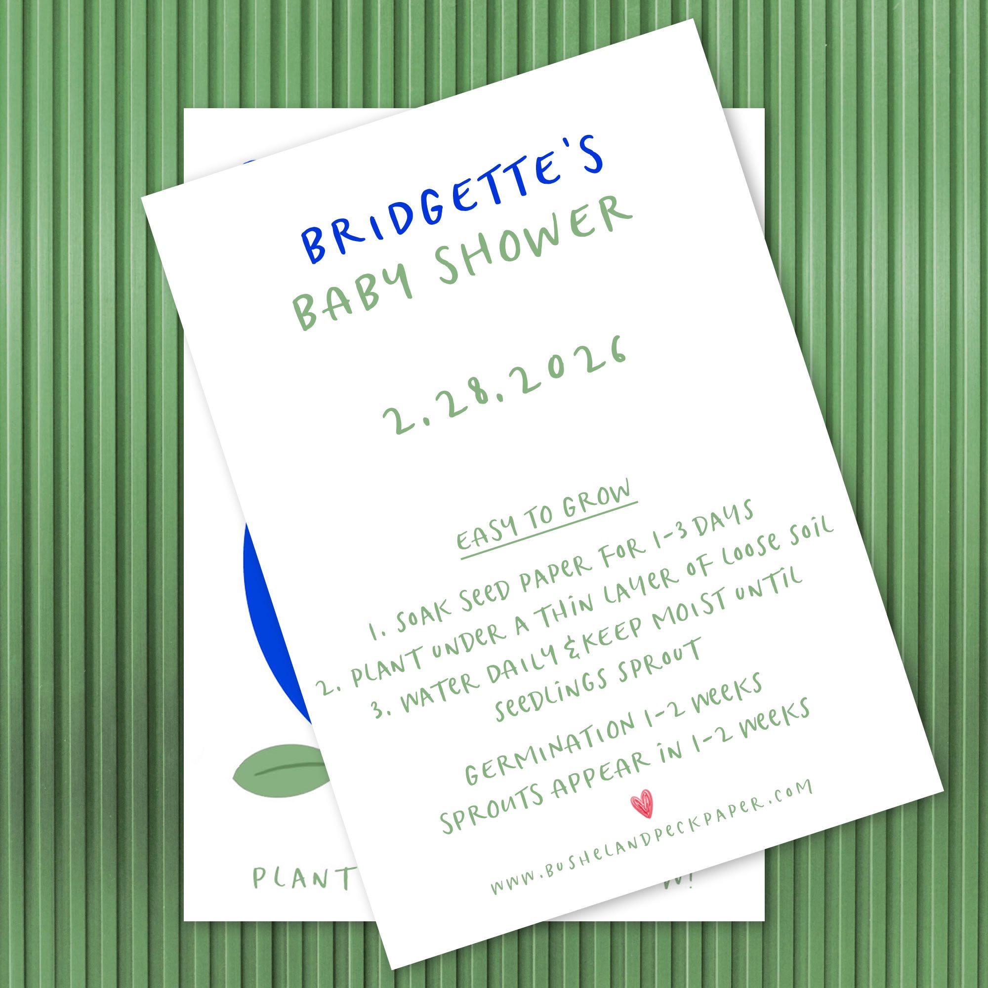 Available with blank backs or personalized with guest of honor's name and shower date.